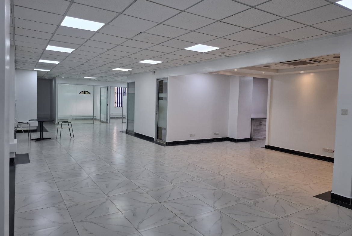 Are you a corporate organisation looking for an address in Nairobi, we’ve got you covered. In Westlands, just a walking distance to GTC mall and Broadwalk mall, we’ve got this 2860sqft office with 1500sqft terrace space available for rent. The office is easily accessible through public transport. It’s also in close proximity to malls and eateries, hence making it a perfect location for an office. It features;